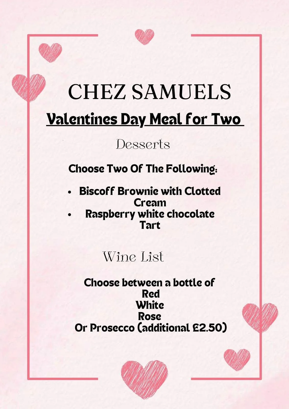 Spoil the one you love this Valentines with a delicious home cooked meal.